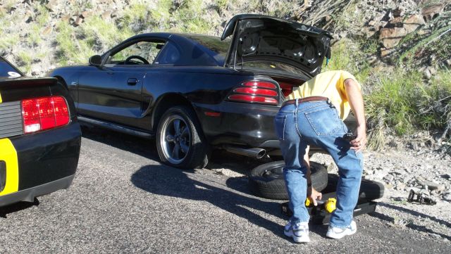 His car took quite a bit of damage including two flat tires,