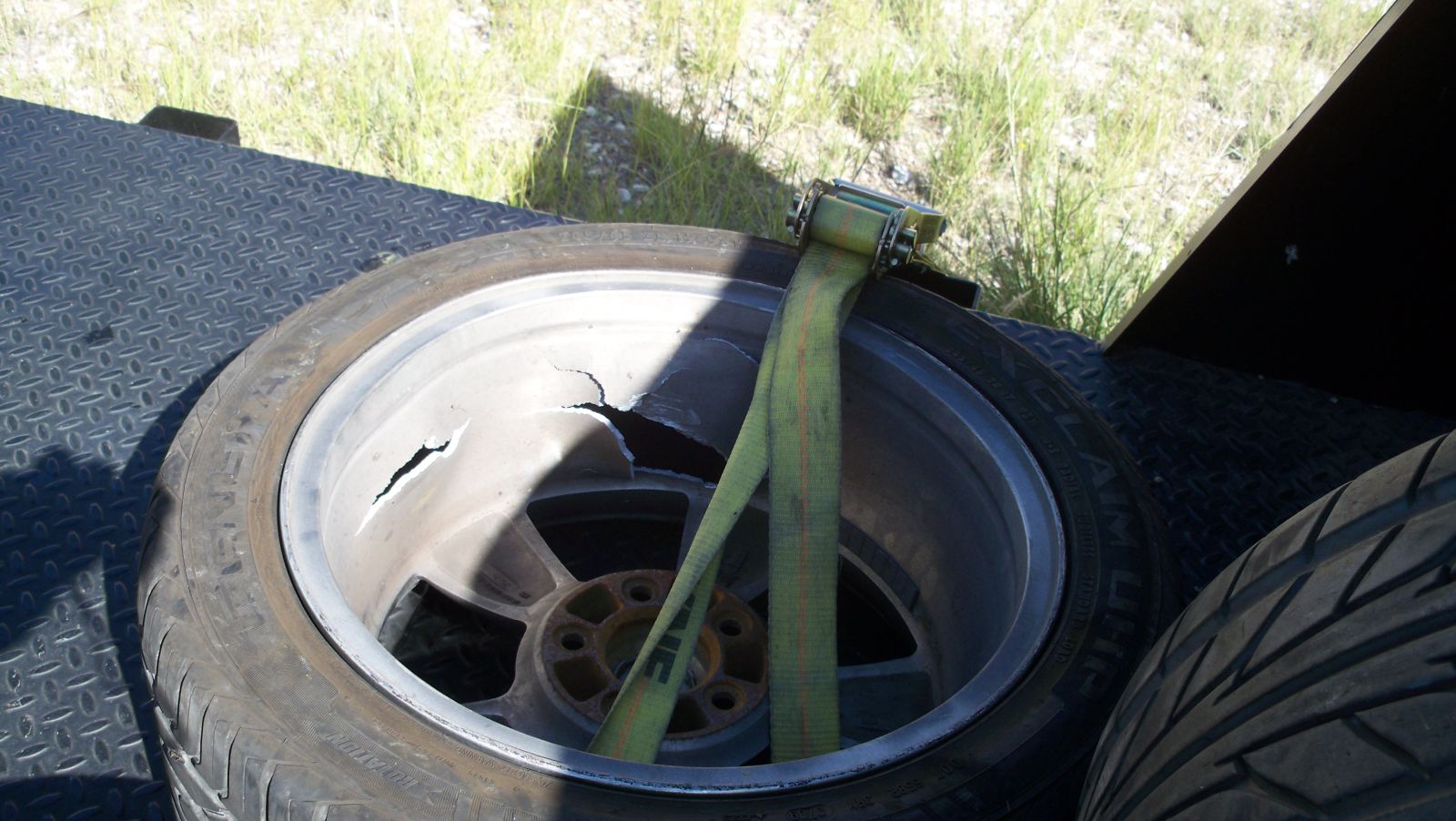 two ruined rims, damaged front fascia and front suspension.