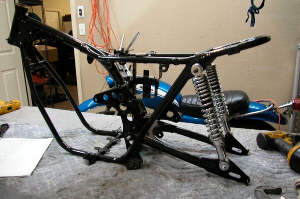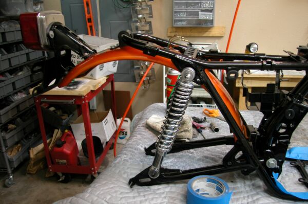 Swingarm and rear shocks in place