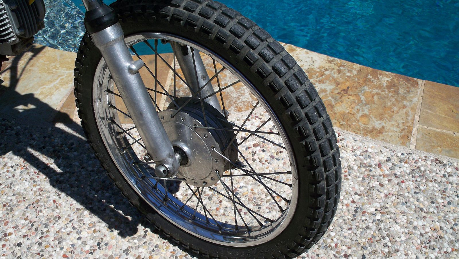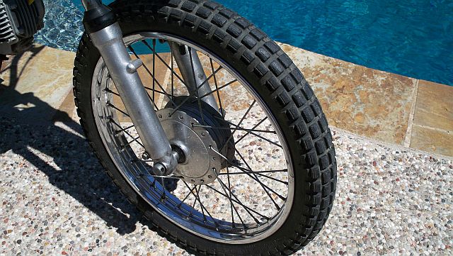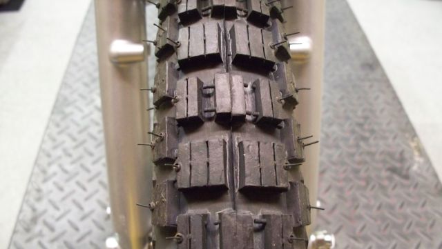 closeup of the front tire tread.