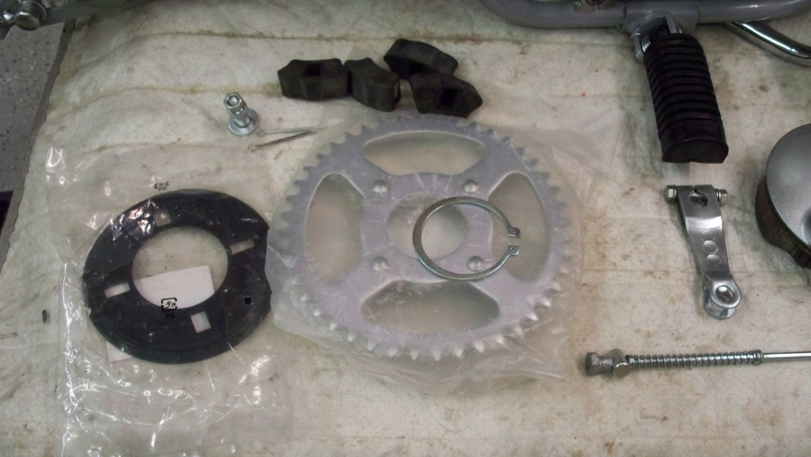 Sprocket rubbers, new rear sprocket and cover.
