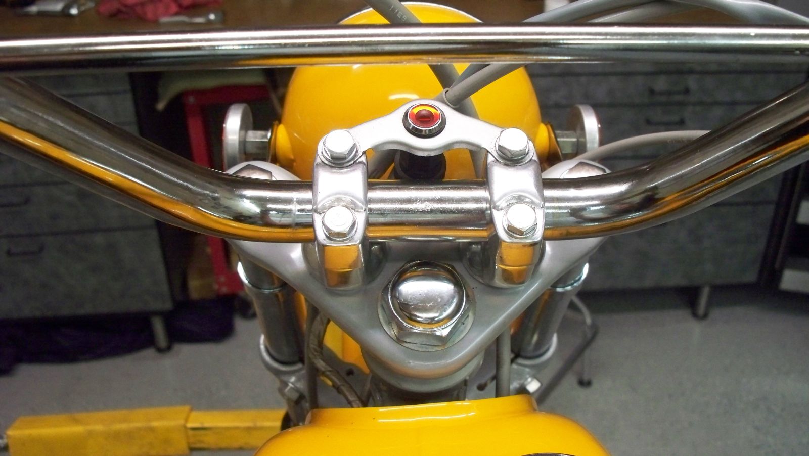 rechromed handlebars and this is the high beam indicator