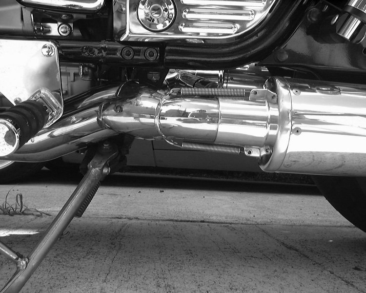 Custom built mufflers, slash cut at rear