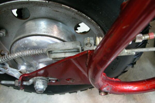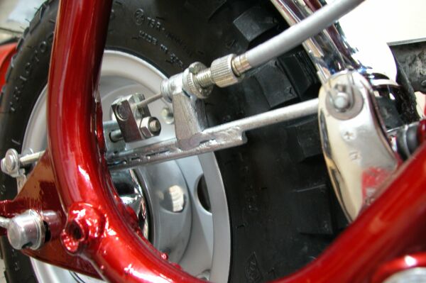 detail of the back brake assembly including the retaining
