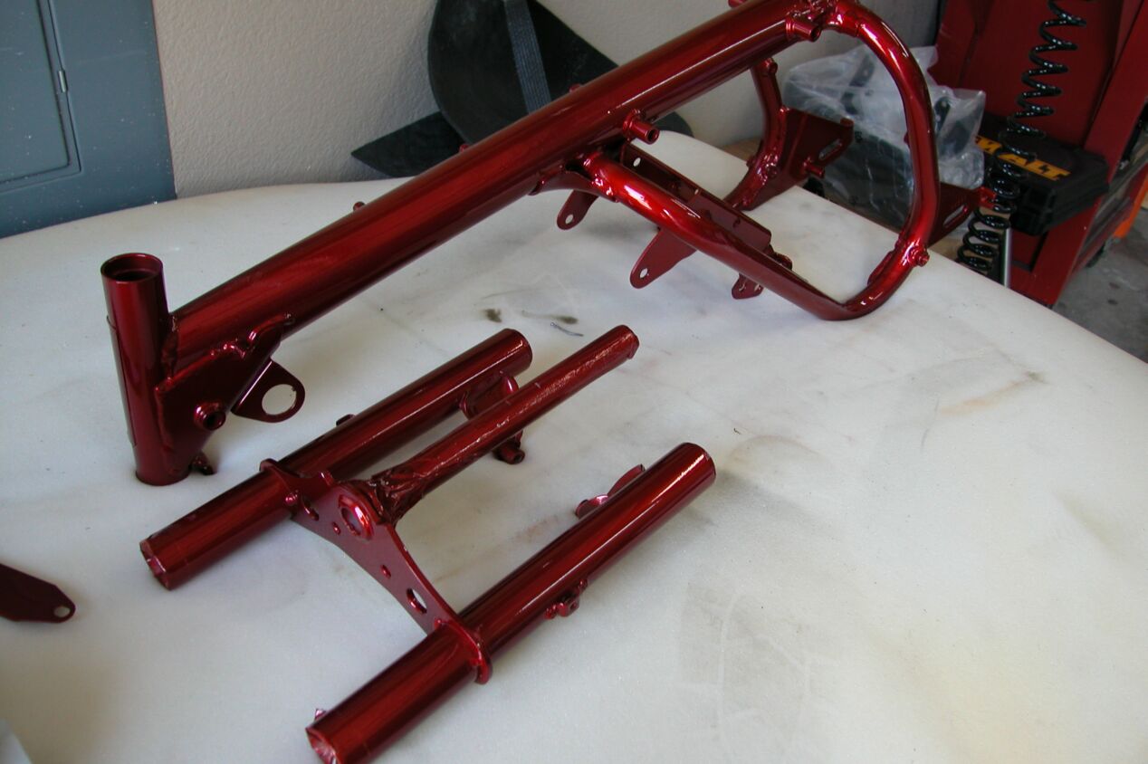 Got the front forks back from the painter, assembled the