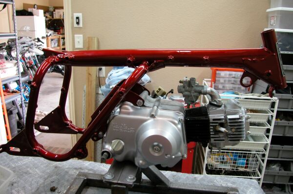 Hand made jig to hold the engine lets me build the bike