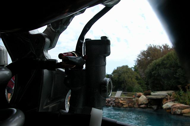 dark picture of the adapter on the rear brake reservoir for