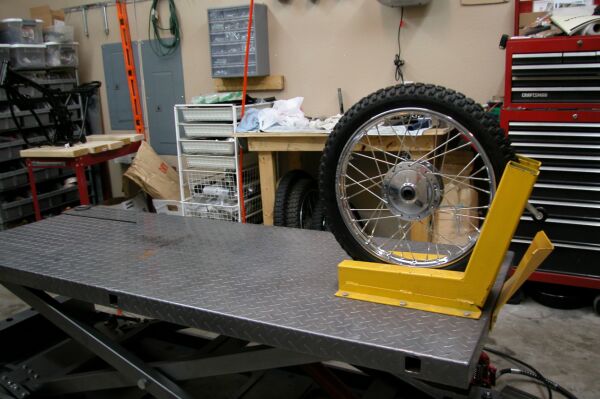 Front wheel in the clamps and ready to