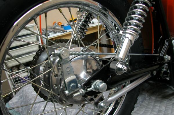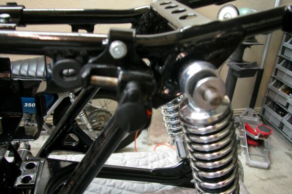 Swingarm and rear shocks in place