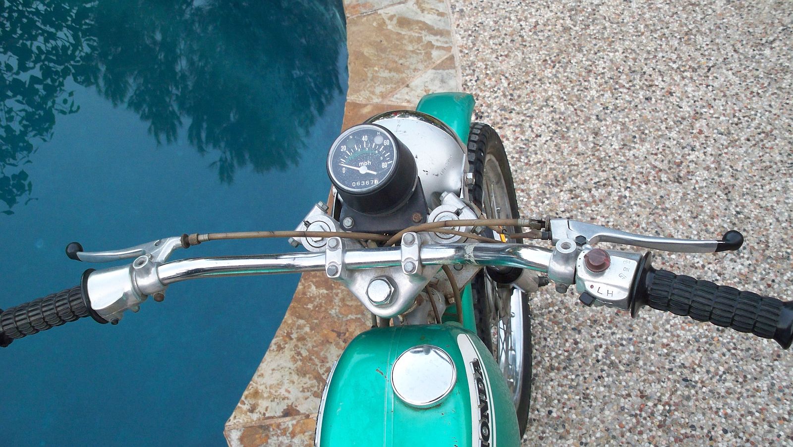 rims, spokes, speedometer, cables, levers, grips, pegs,