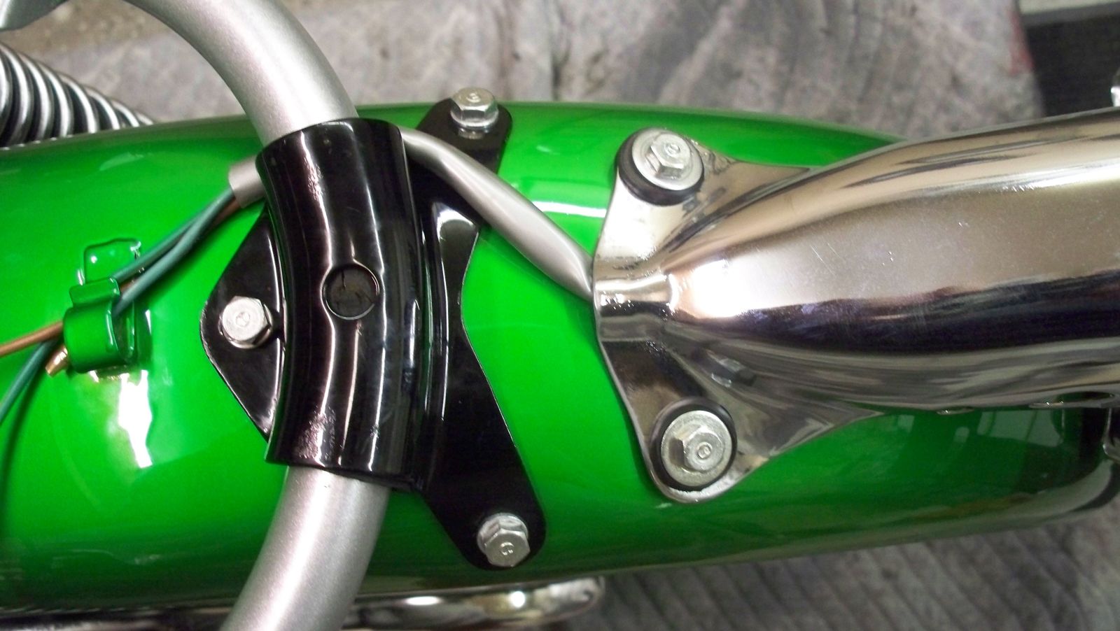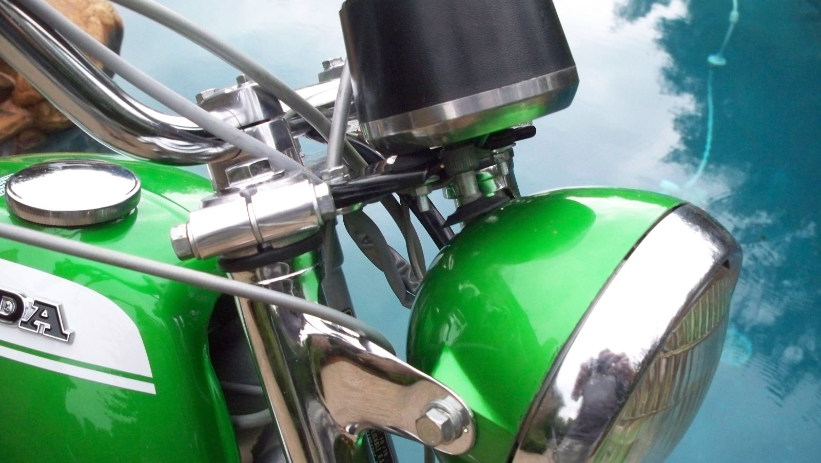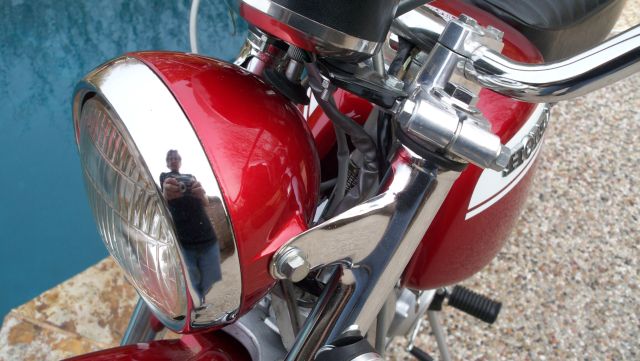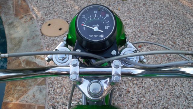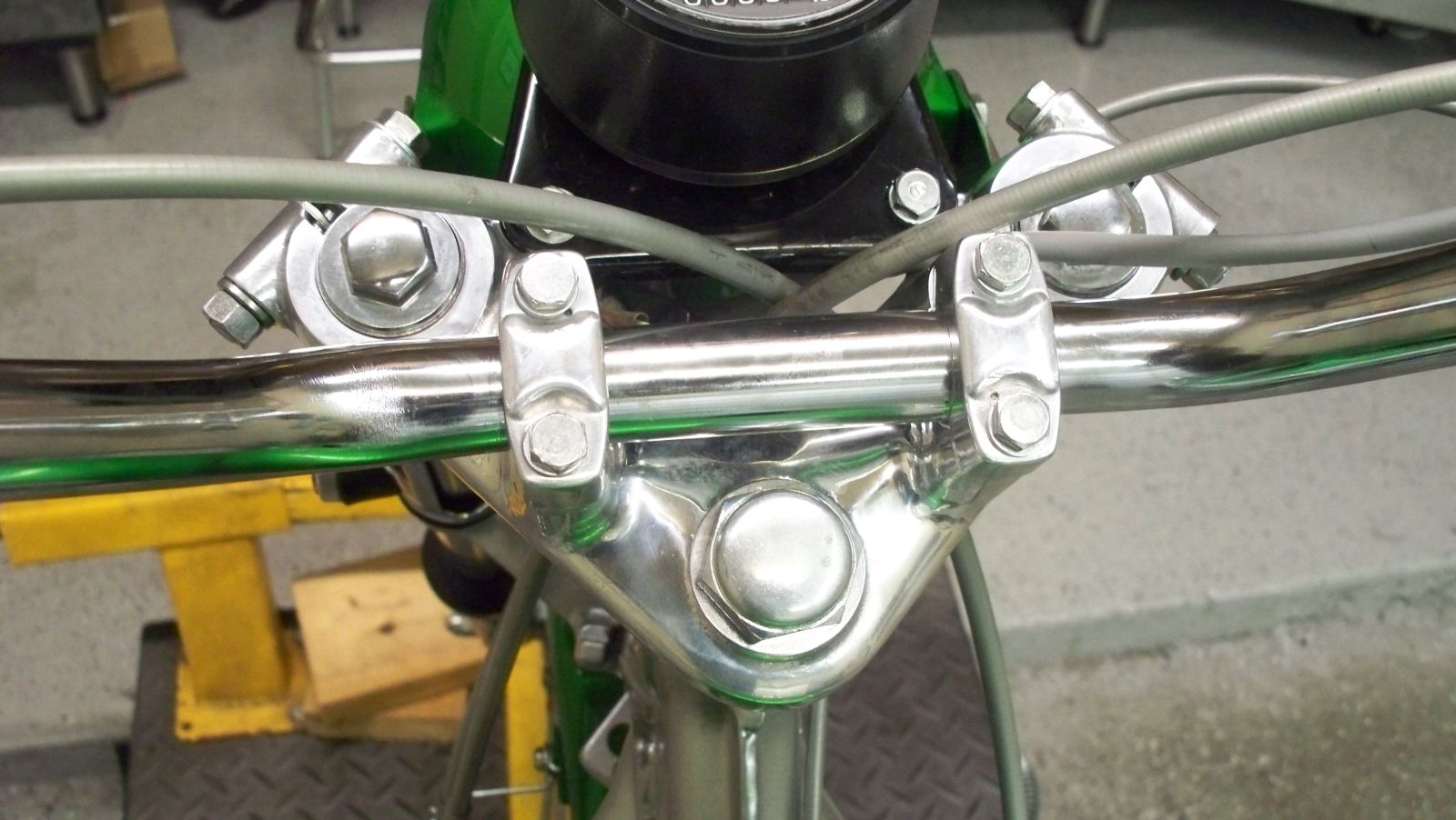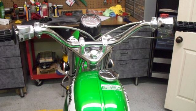 Rechromed bars, license bracket, headlight ears, chain