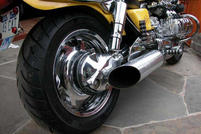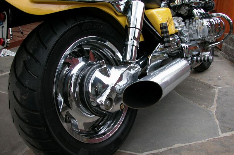 Custom built mufflers, slash cut at rear