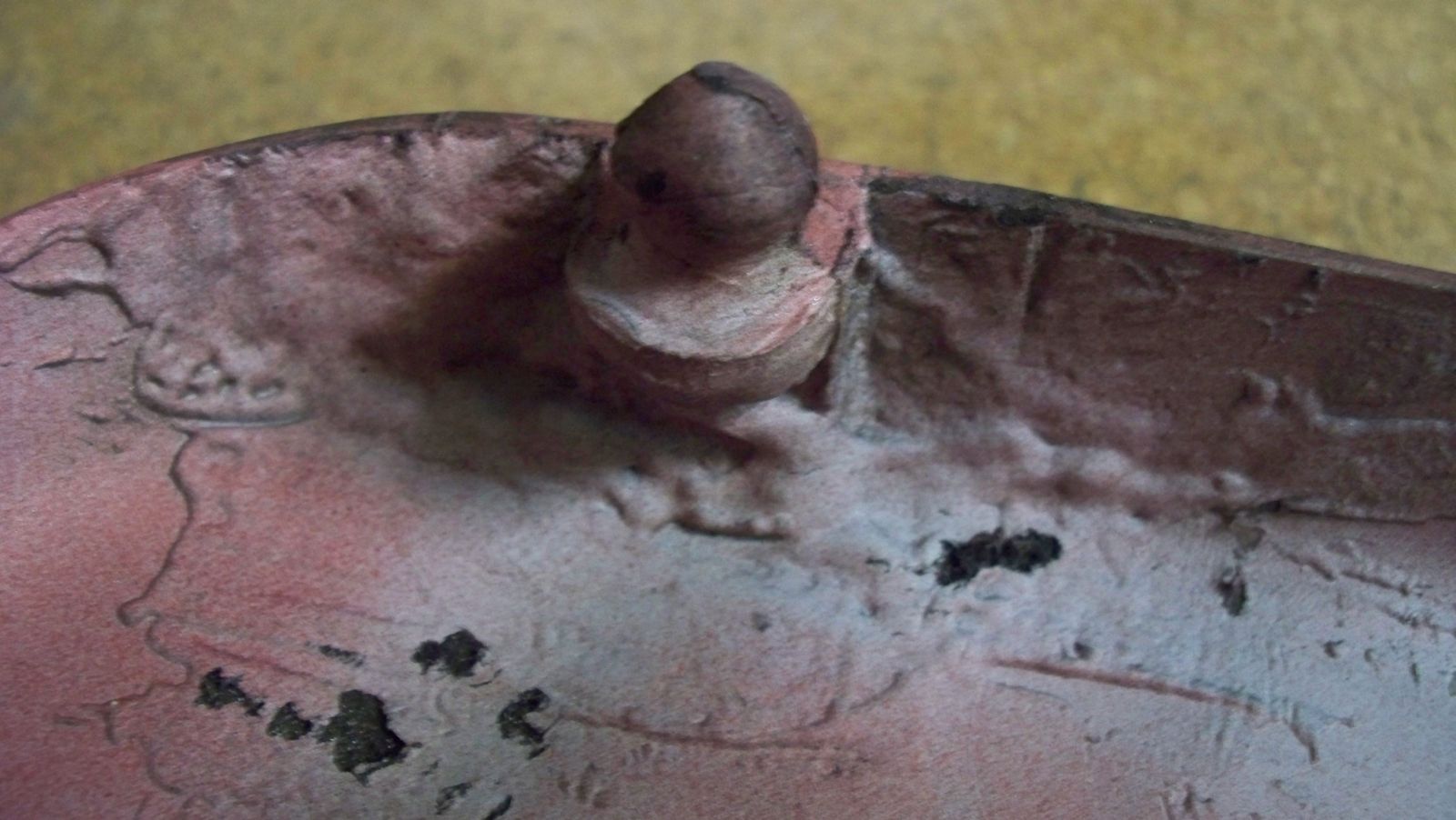 It was obviously repaired before repainting.