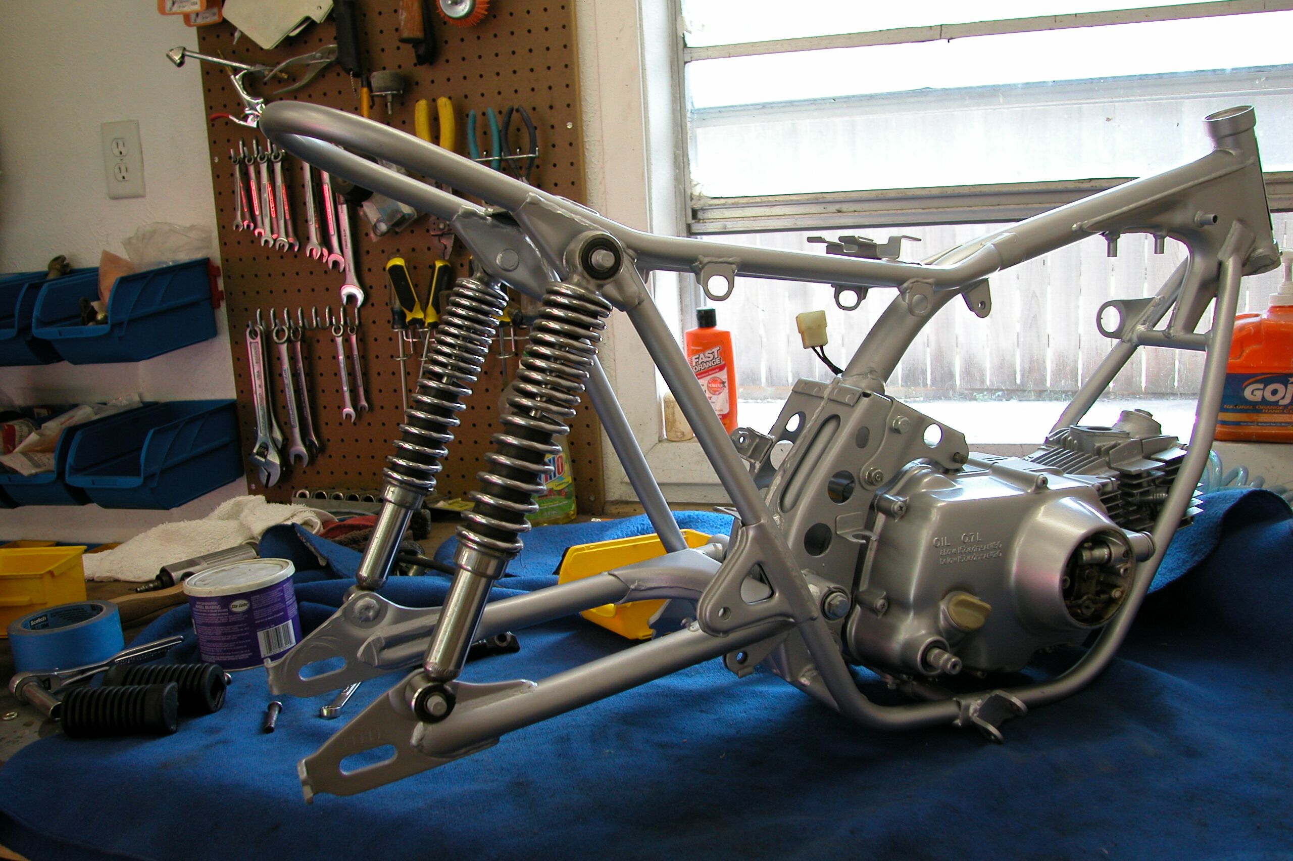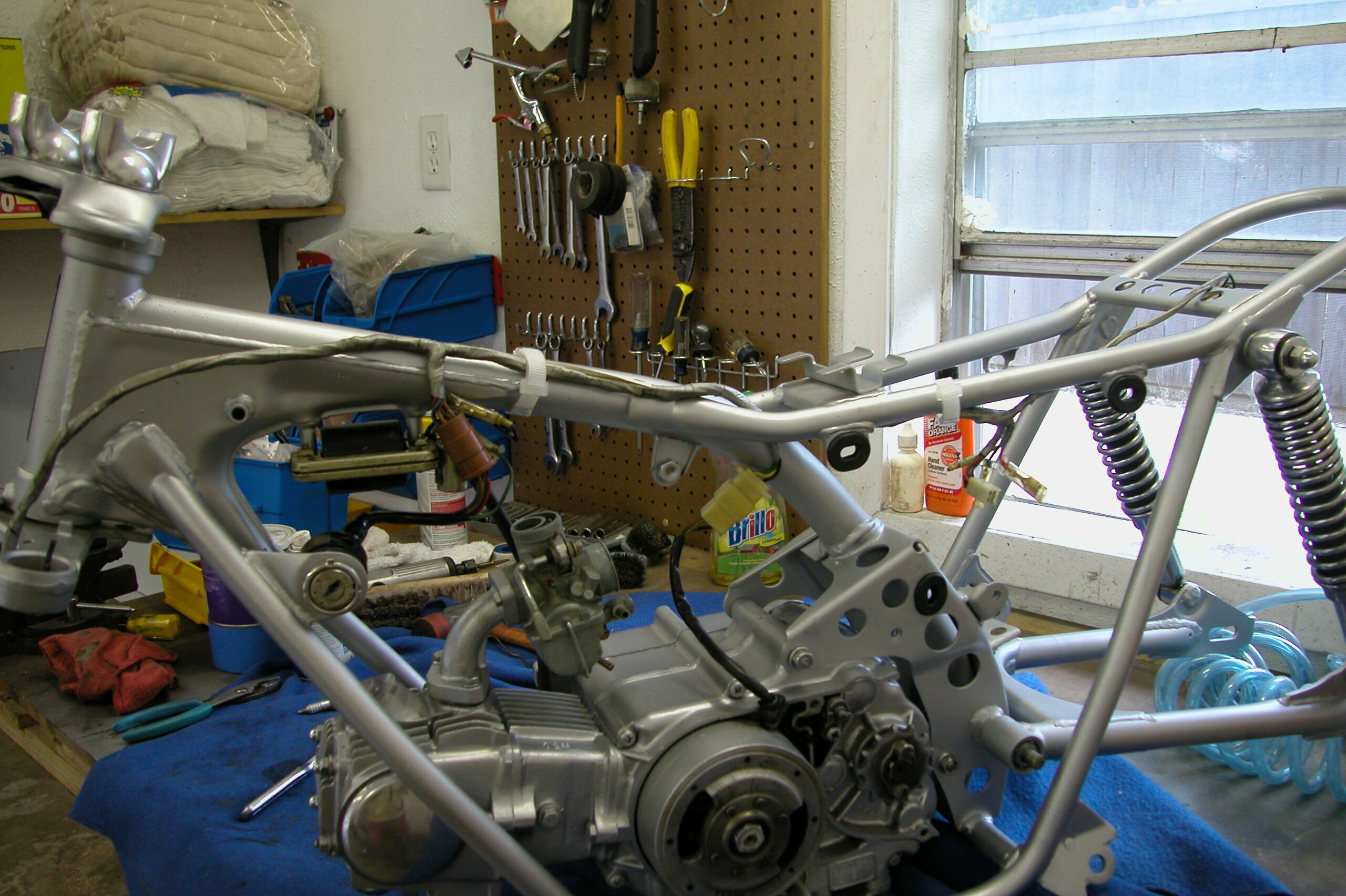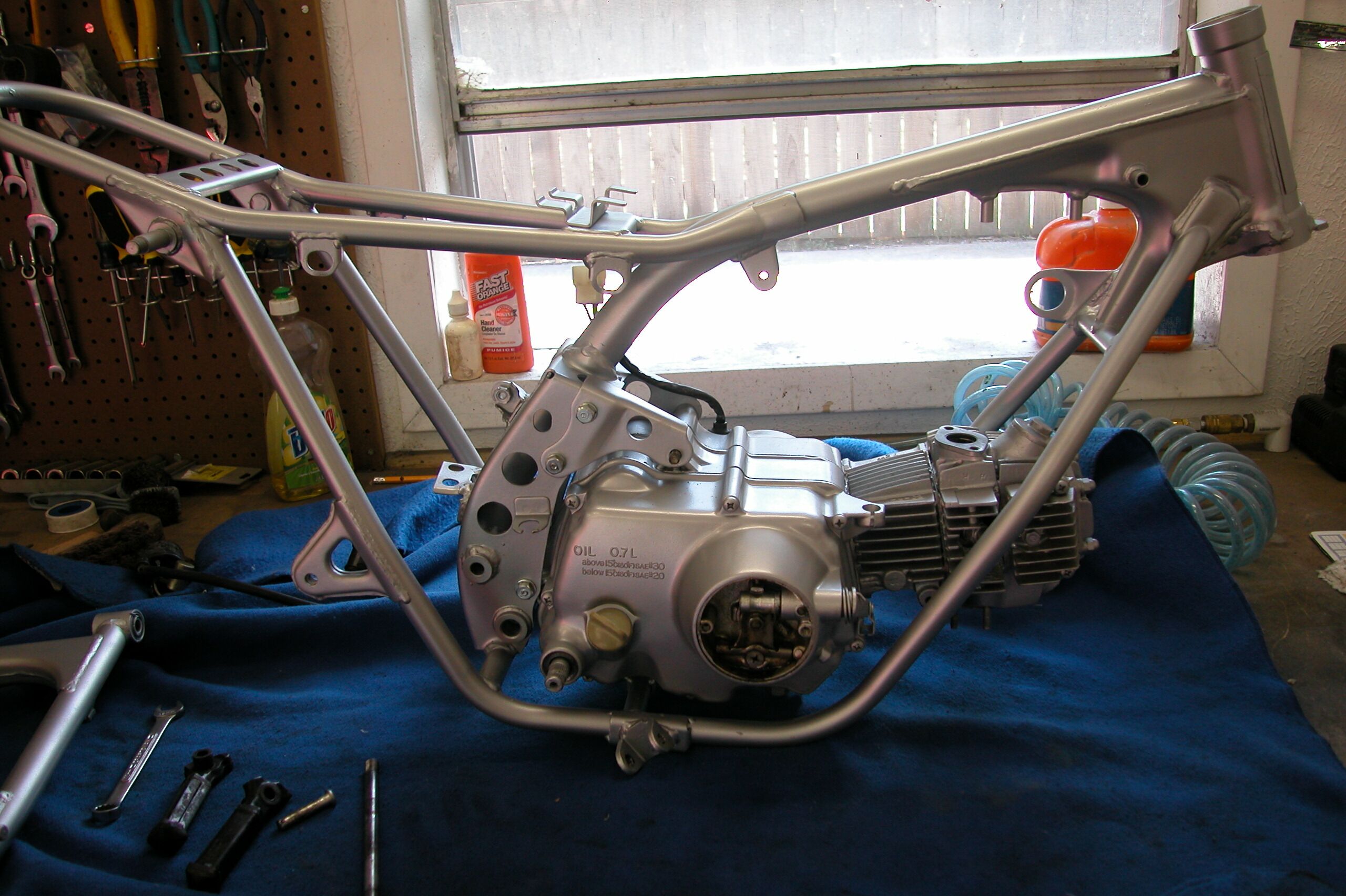 Exhaust pipe goes on next. Putting the rear