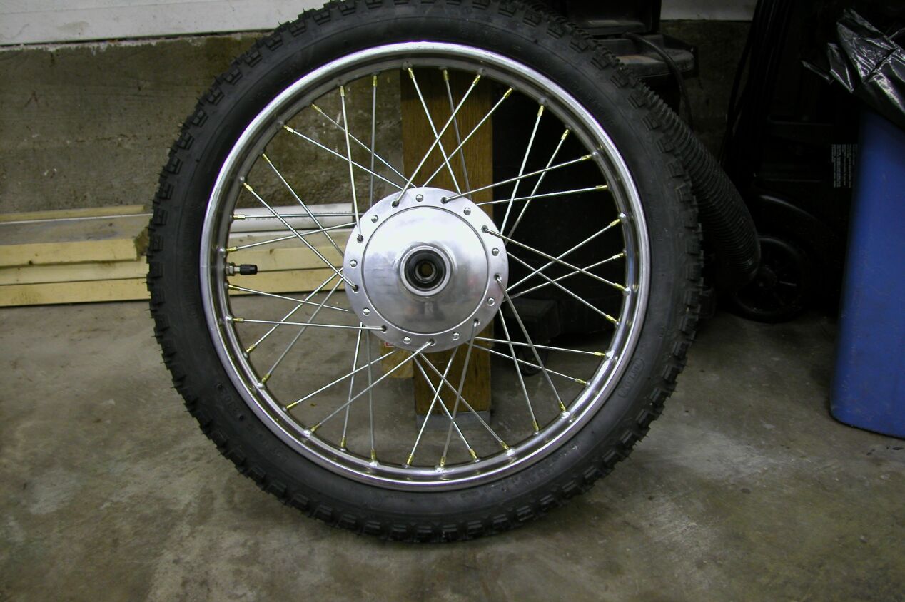 Rear wheel after polishing the hub and new spokes,
