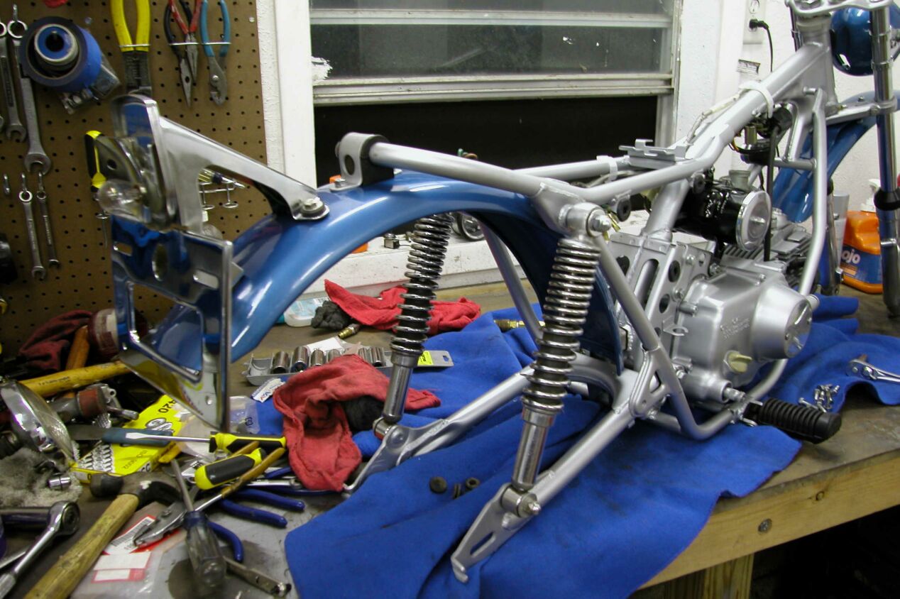 Next comes the swingarm and rear shocks